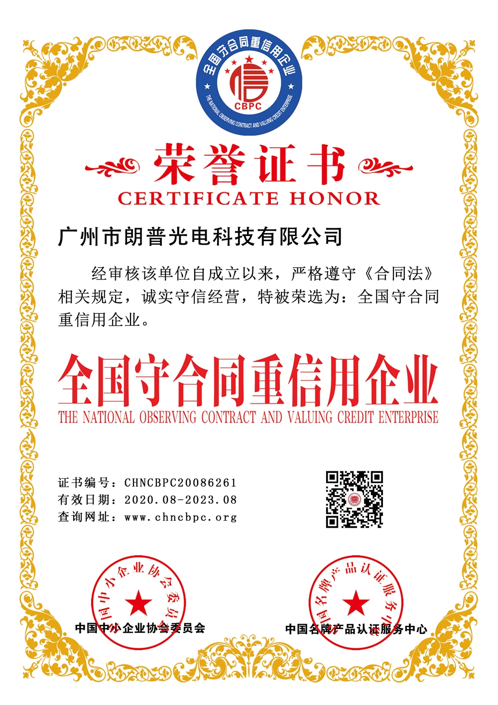 全國守合同重信用企業